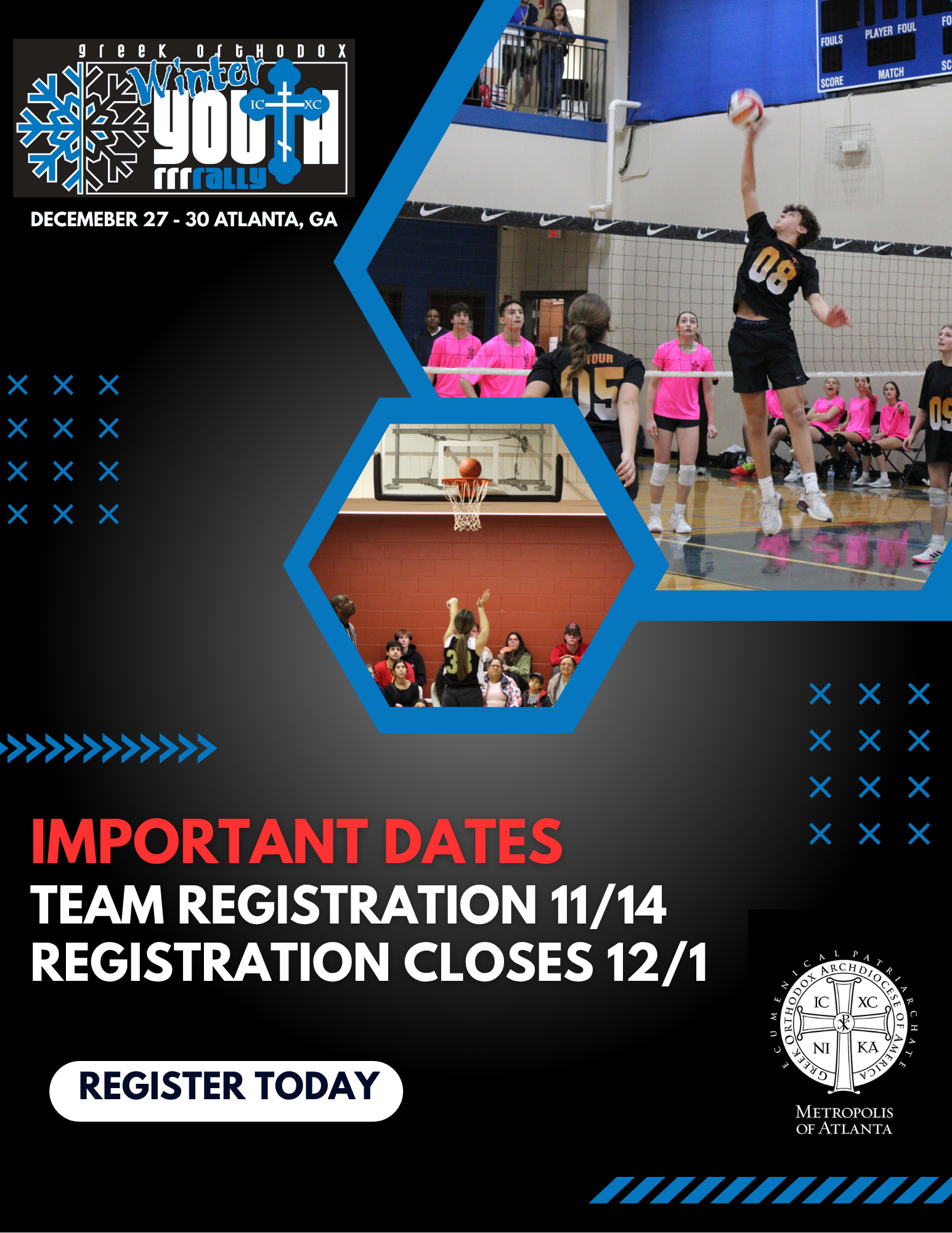 All Orthodox teens in 7th-12th grade in the Greek Orthodox Metropolis of Atlanta who are involved in their local parish's GOYA and Church School program are invited to attend the Winter Youth Rally. Join us in Atlanta, GA December 27- 30 to compete in tournaments representing your church community. Each parish must have a Lead Advisor assigned by the parish priest for GOYANs to attend!